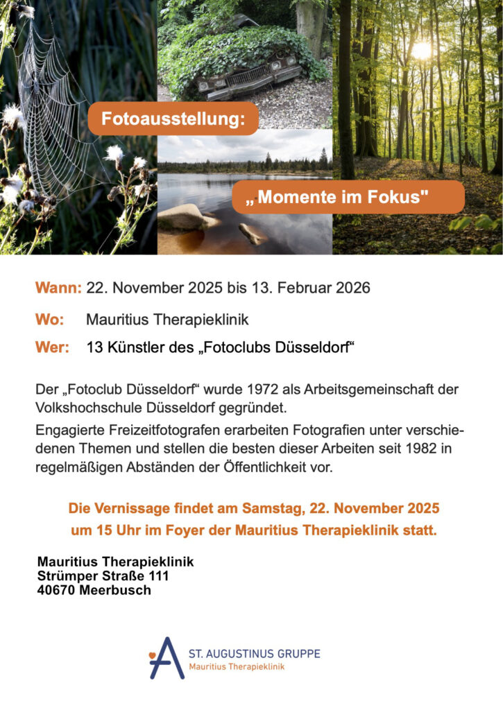 Samstag, 22. November 2025 um 15 Uhr im Foyer der Mauritius Therapieklinik statt.